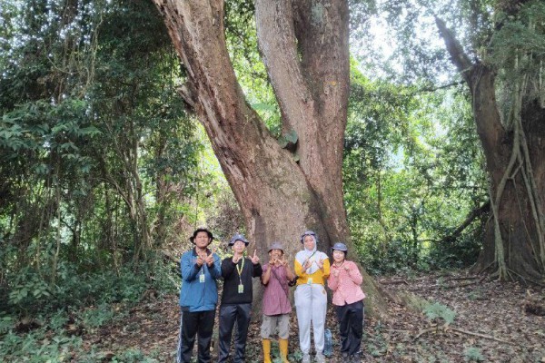 Mahasiswa UGM bersama juru kunci Mbah Gimo di Hutan Wonosadi, Gunungkidul. DIY. (sumber: ugm.ac.id)
